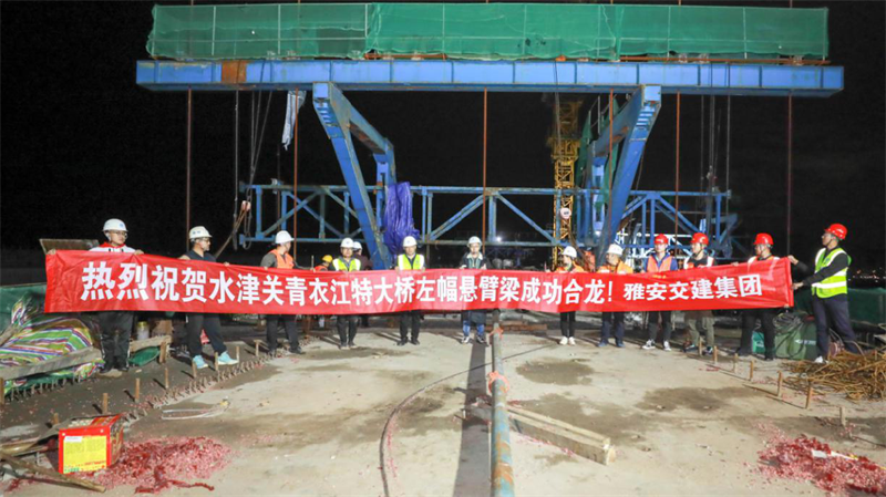 成雅快速通道水津關(guān)青衣江特大橋左幅中跨順利合龍