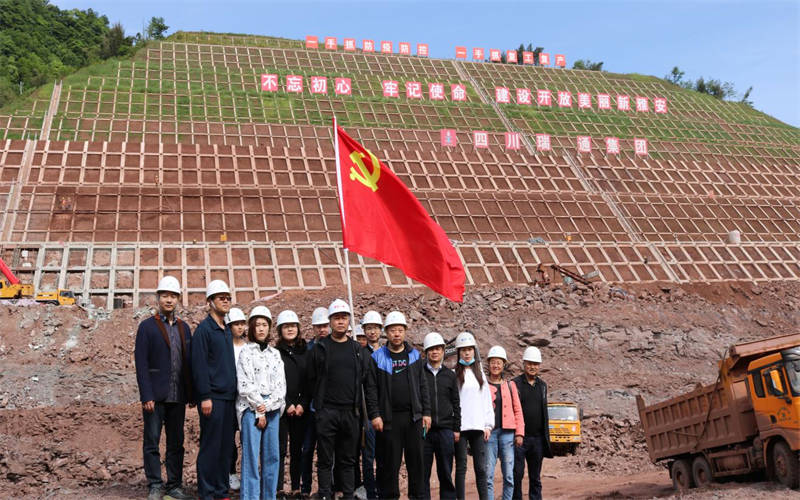 在活動現場,工程部部長劉太亮給大家介紹了雨名快速通道項目建設情況,高邊坡支護班組相關負責人現場指導高邊坡支護防護工作。全體黨員、入黨積極分子和公司其他員工在工程管理人員指導下,揮鎬舞鋤,積極參與勞動體驗。