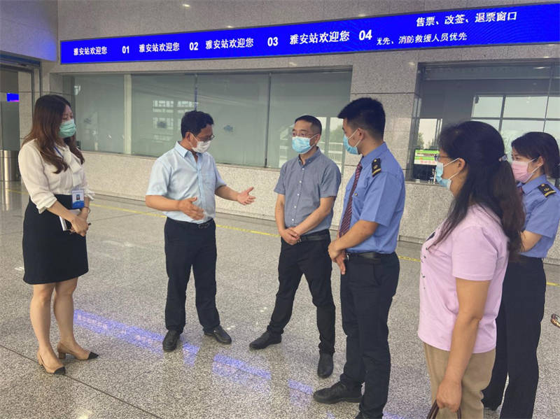 陳武一行分別檢查了火車站出、入站口的人員登記、測溫、掃碼等防疫措施落實(shí)情況,聽取了相關(guān)情況匯報(bào),對運(yùn)通公司開展雅安火車站疫情防控工作以來所取得的成效給予了充分肯定。