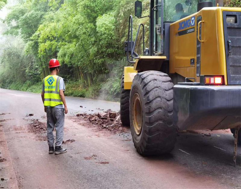 災(zāi)情發(fā)生后,交建路橋公司省道104改建工程項(xiàng)目部應(yīng)望魚鎮(zhèn)抗洪搶險(xiǎn)應(yīng)急指揮部要求,立即啟動(dòng)抗洪搶險(xiǎn)應(yīng)急預(yù)案,由20余名現(xiàn)場(chǎng)施工人員組成的搶險(xiǎn)隊(duì)伍兵分三路,投入挖機(jī)2臺(tái)、裝載機(jī)2臺(tái)、水車1臺(tái)、皮卡車2輛,圓滿完成雅趙路多處塌方和曹萬(wàn)村、嫣溪溝村等村道泥石流及邊坡坍塌土石方清理工作,及時(shí)恢復(fù)道路交通,受到當(dāng)?shù)攸h委政府和村民一致好評(píng)。