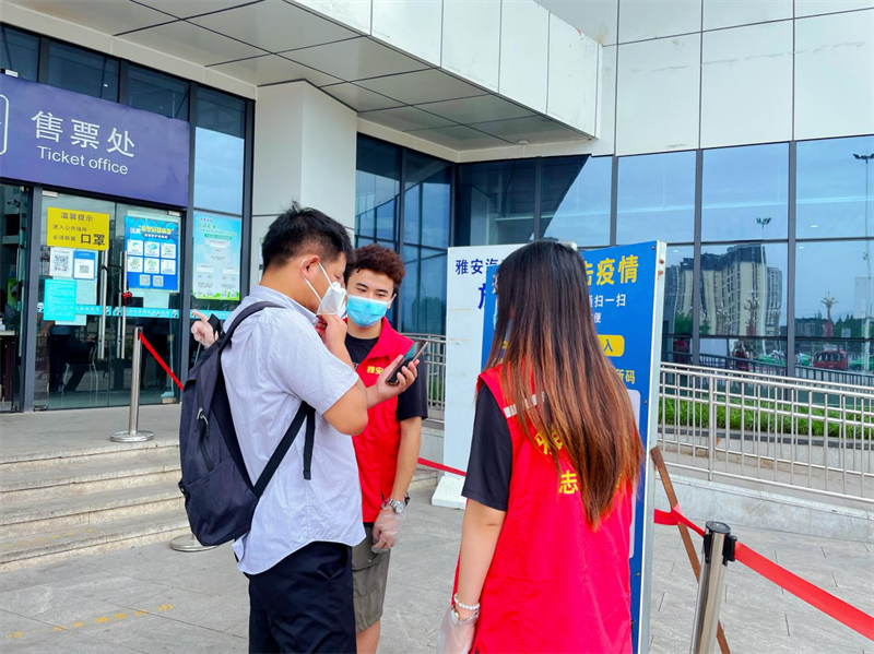 青年志愿者們嚴(yán)格遵守雅安市汽車客運(yùn)站站長葛舉康為大家講解的疫情防控工作要求,積極投身志愿服務(wù),分別在雅安市火車站進(jìn)出站口、雅安市汽車客運(yùn)站進(jìn)站口、售票大廳、候車廳等點(diǎn)位駐守,勸導(dǎo)旅客戴好口罩、查驗(yàn)場所碼、行程碼及核酸報(bào)告,并向乘客宣傳疫情防控知識,時(shí)刻提醒旅客保持安全距離,認(rèn)真維護(hù)現(xiàn)場秩序。