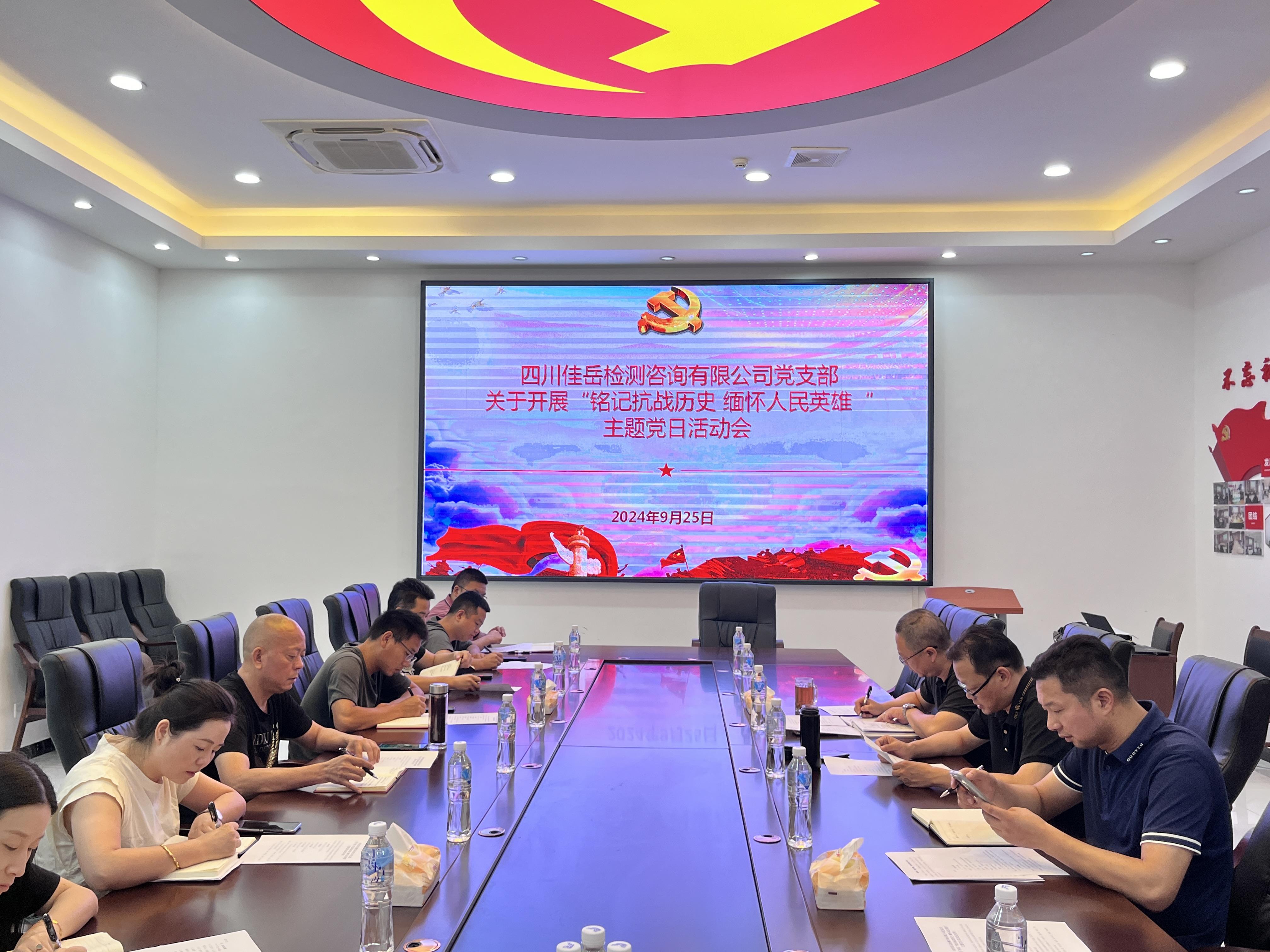 為增強(qiáng)全體黨員干部職工對(duì)抗日戰(zhàn)爭(zhēng)歷史的了解和認(rèn)識(shí),讓偉大抗戰(zhàn)精神薪火相傳,雅安交建集團(tuán)佳岳公司黨支部于9月25日,開(kāi)展了“銘記抗戰(zhàn)歷史,緬懷人民英雄”主題黨日活動(dòng),公司全體黨員、入黨積極分子及中層干部參加。