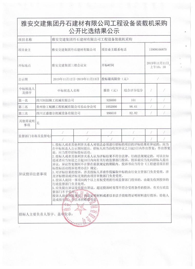 雅安交建集團(tuán)丹石建材有限公司工程設(shè)備裝載機(jī)采購公開比選結(jié)果公示