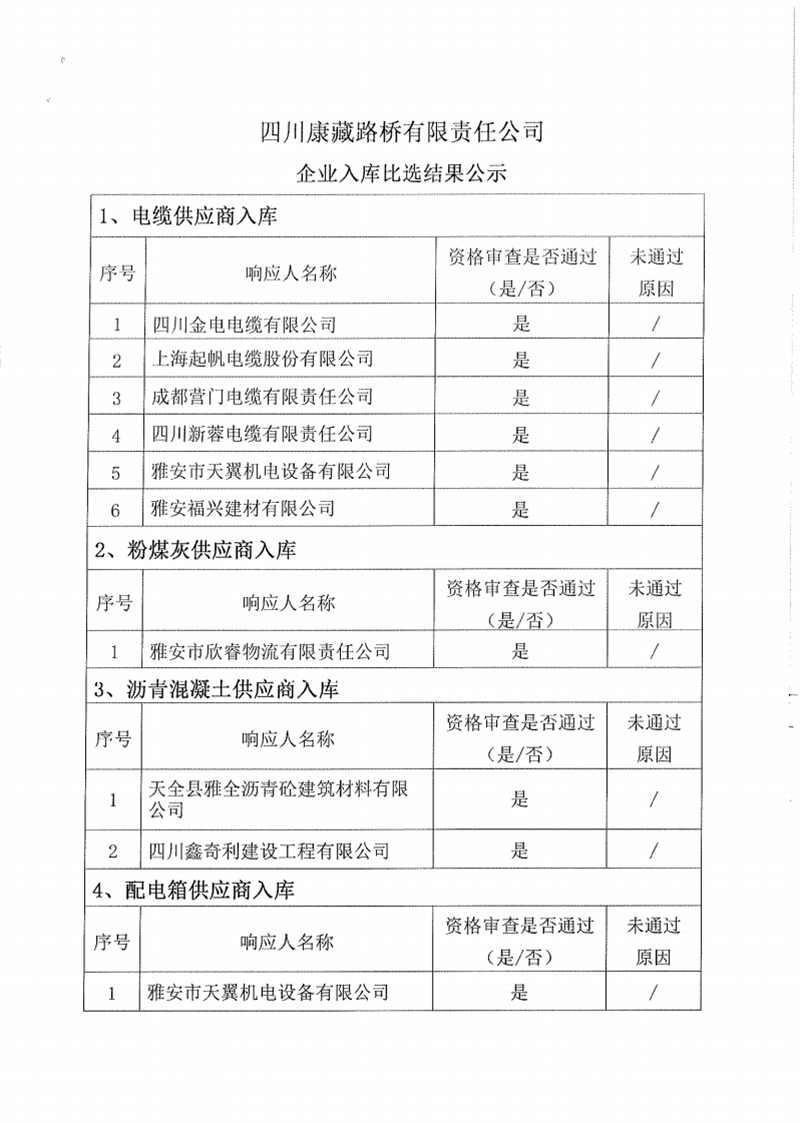 四川康藏路橋有限責任公司企業(yè)入庫比選結果公示