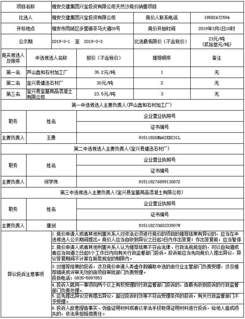 雅安交建集團(tuán)興寶投資有限公司天然沙競價銷售項(xiàng)目公示