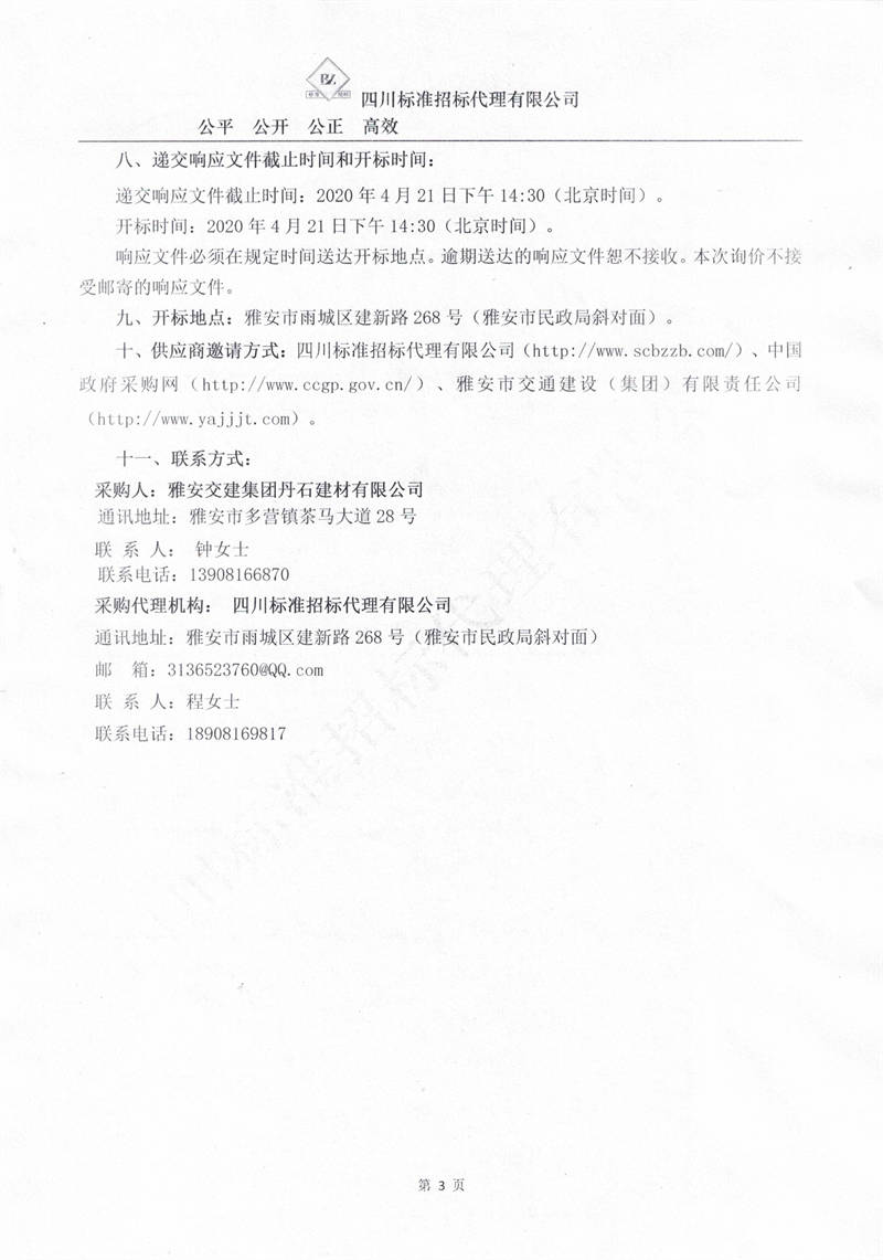 雅安交建集團(tuán)丹石建材有限公司成雅快速通道一標(biāo)段砂石運輸服務(wù)項目詢價公告