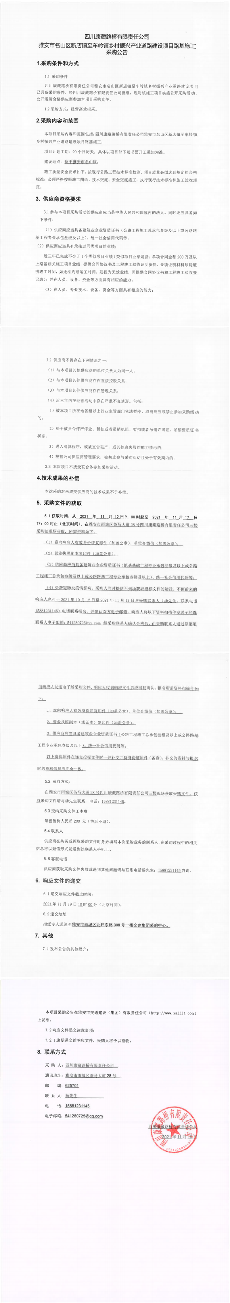 四川康藏路橋有限責(zé)任公司雅安市名山區(qū)新店鎮(zhèn)至車嶺鎮(zhèn)鄉(xiāng)村振興產(chǎn)業(yè)道路建設(shè)項(xiàng)目路基施工采購(gòu)公告