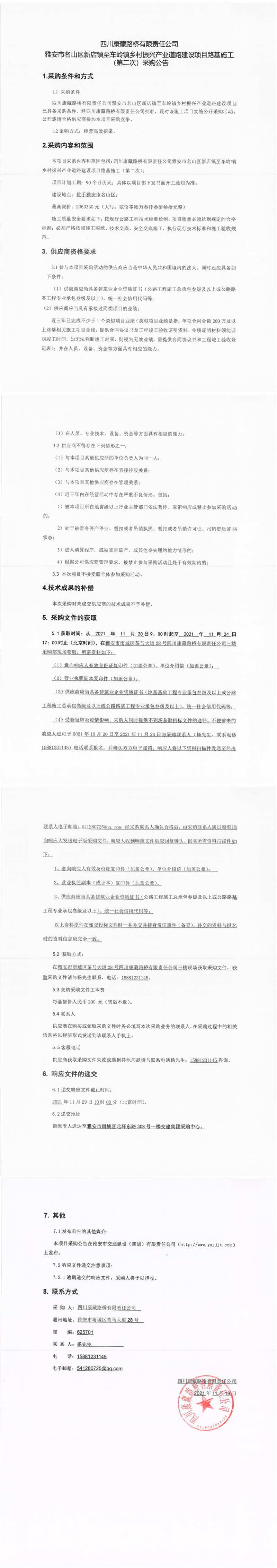 四川康藏路橋有限責(zé)任公司雅安市名山區(qū)新店鎮(zhèn)至車嶺鎮(zhèn)鄉(xiāng)村振興產(chǎn)業(yè)道路建設(shè)項(xiàng)目路基施工(第二次)采購(gòu)公告