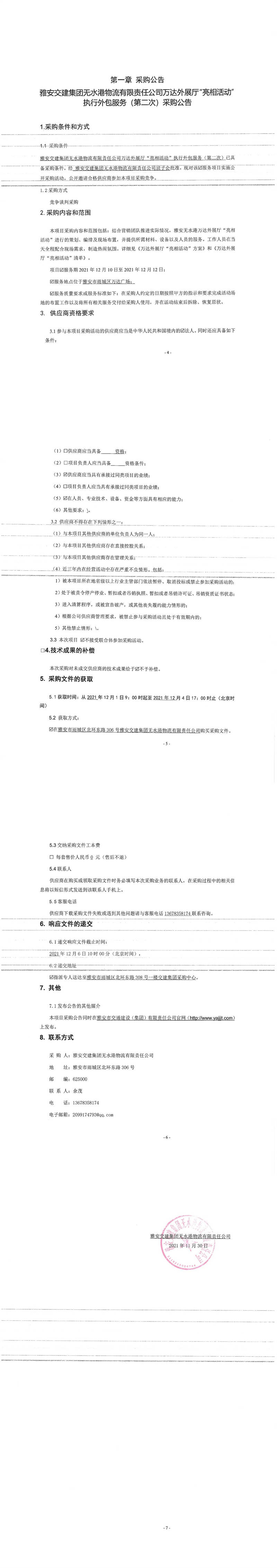 雅安交建集團無水港物流有限責任公司萬達外展廳“亮相活動”執(zhí)行外包服務(第二次)采購公告