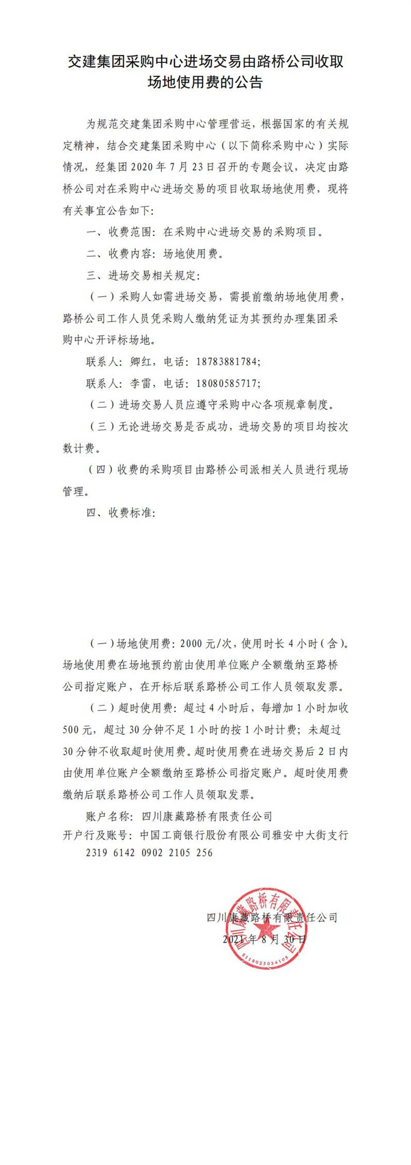 交建集團(tuán)采購(gòu)中心進(jìn)場(chǎng)交易由路橋公司收取場(chǎng)地使用費(fèi)的公告