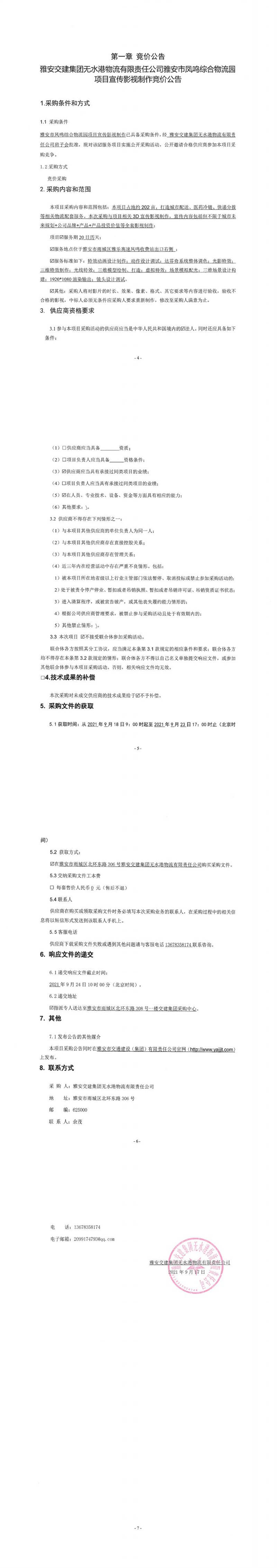 雅安交建集團(tuán)無(wú)水港物流有限責(zé)任公司雅安市鳳鳴綜合物流園項(xiàng)目宣傳影視制作競(jìng)價(jià)公告