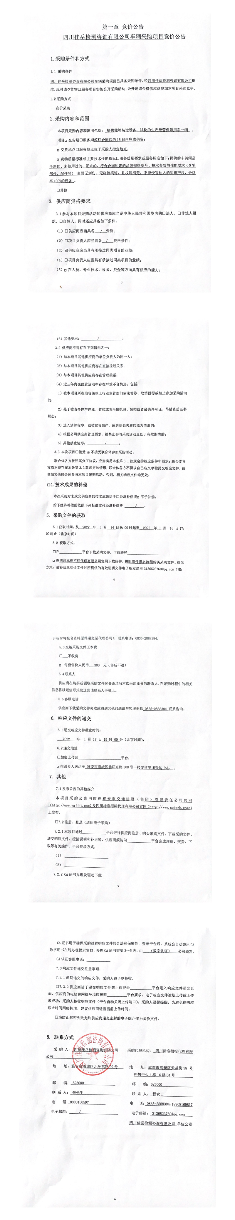 四川佳岳檢測咨詢有限公司車輛采購項(xiàng)目競價公告