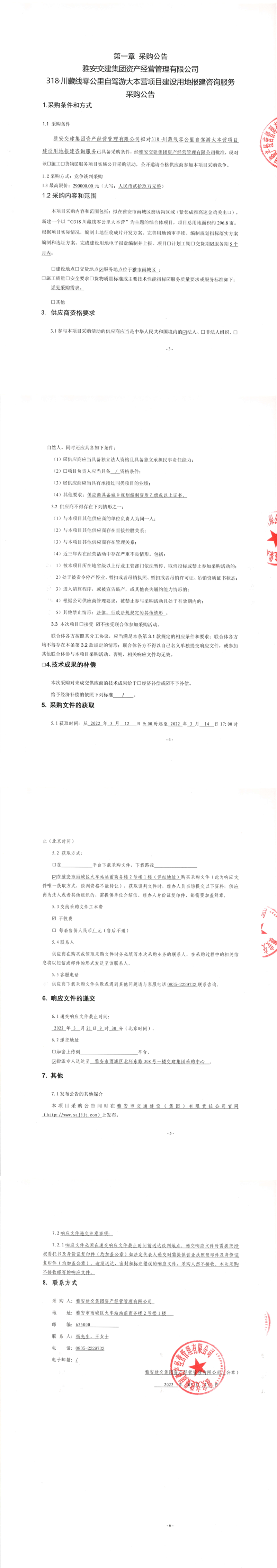 雅安交建集團資產經營管理有限公司318.川藏線零公里自駕游大本營項目建設用地報建咨詢服務采購公告