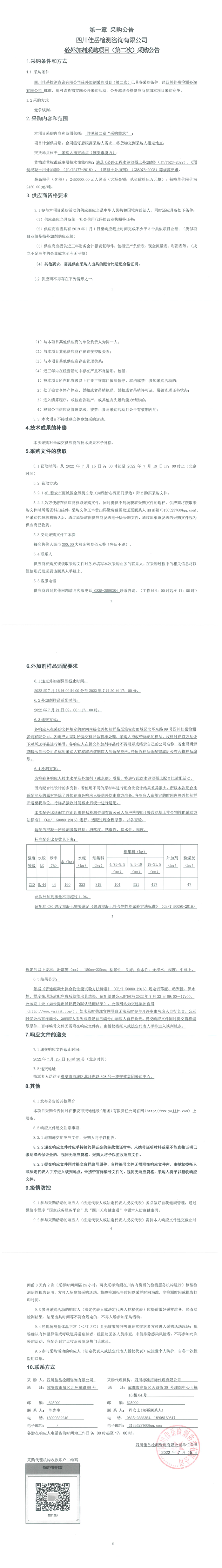四川佳岳檢測咨詢有限公司砼外加劑采購項(xiàng)目(第二次)采購公告