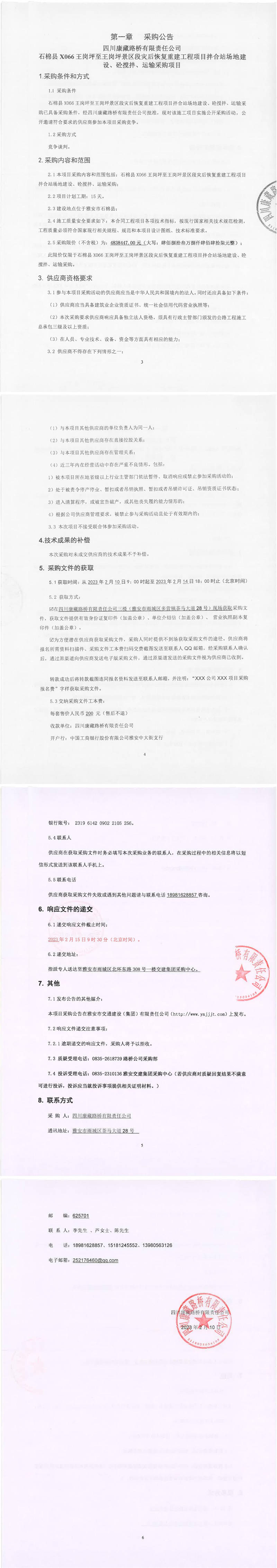 四川康藏路橋有限責任公司石棉縣X066王崗坪至王崗坪景區(qū)段災后恢復重建工程項目拌合站場地建設、砼攪拌、運輸采購項目采購公告