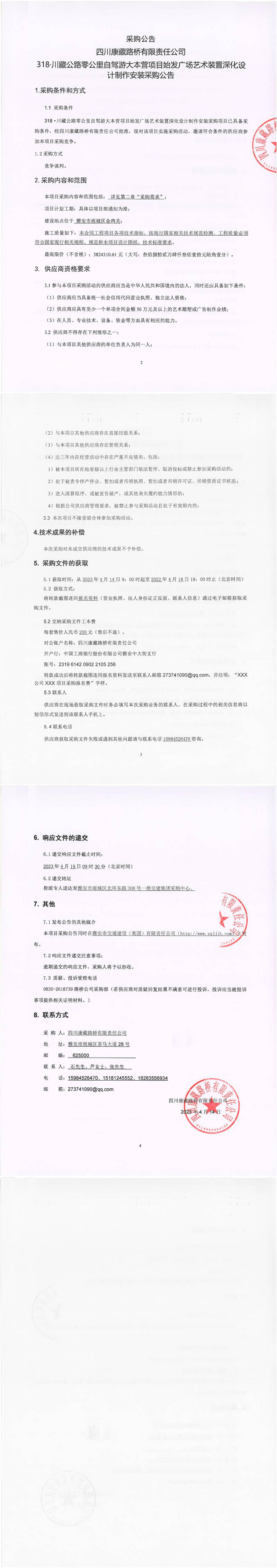 四川康藏路橋有限責任公司318·川藏公路零公里自駕游大本營項目始發(fā)廣場藝術(shù)裝置深化設計制作安裝采購公告