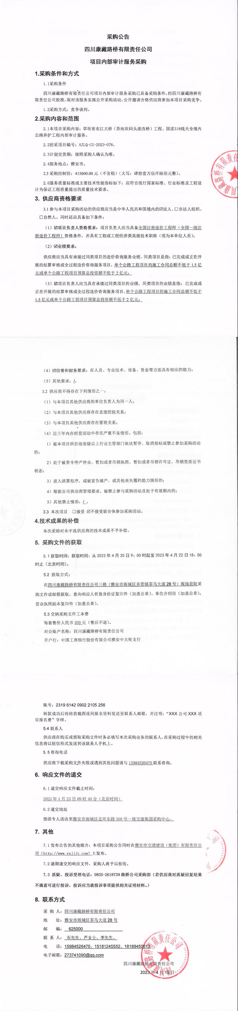四川康藏路橋有限責任公司項目內部審計服務采購公告