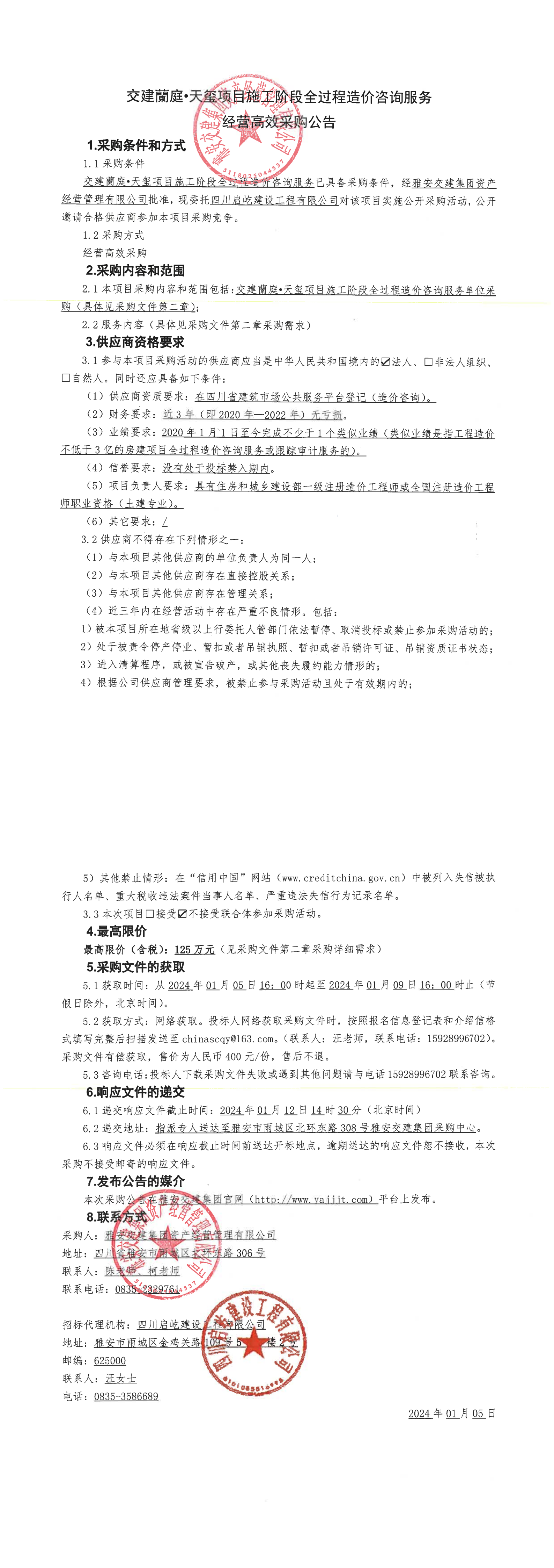 交建蘭庭·天璽項(xiàng)目施工階段全過程造價(jià)咨詢服務(wù)經(jīng)營(yíng)高效采購(gòu)公告
