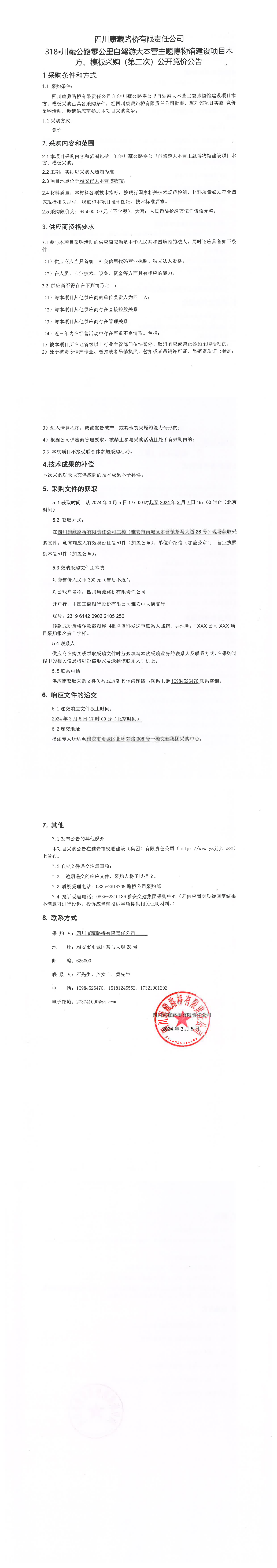 四川康藏路橋有限責(zé)任公司318·川藏公路零公里自駕游大本營(yíng)主題博物館建設(shè)項(xiàng)目木方、模板采購(gòu)(第二次)公開(kāi)競(jìng)價(jià)公告