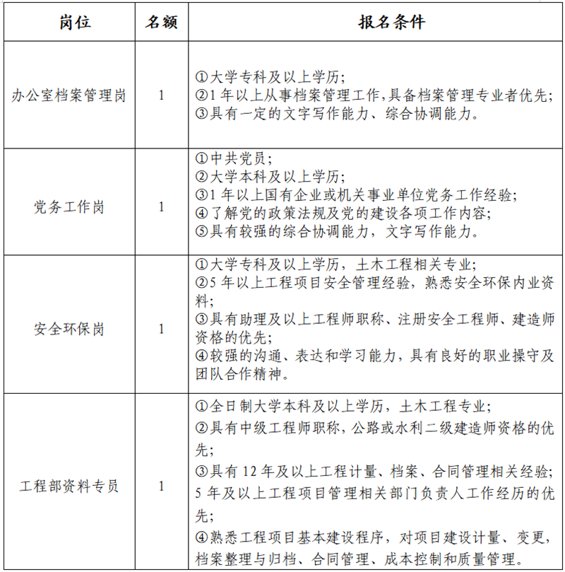 雅安交建集團(tuán)資產(chǎn)經(jīng)營管理有限公司是雅安市重點(diǎn)國有企業(yè)雅安市交建集團(tuán)下屬子公司,主要從事企業(yè)資產(chǎn)經(jīng)營管理;項(xiàng)目投資;土地整理等業(yè)務(wù)。根據(jù)公司發(fā)展需要,決定面向社會公開招聘4名工作人員,現(xiàn)將有關(guān)事項(xiàng)公告如下: