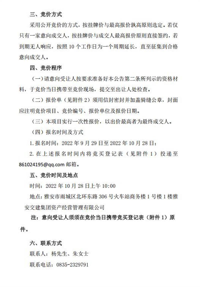 雅安交建無水港公司關于閑置資產公開招租的公告
